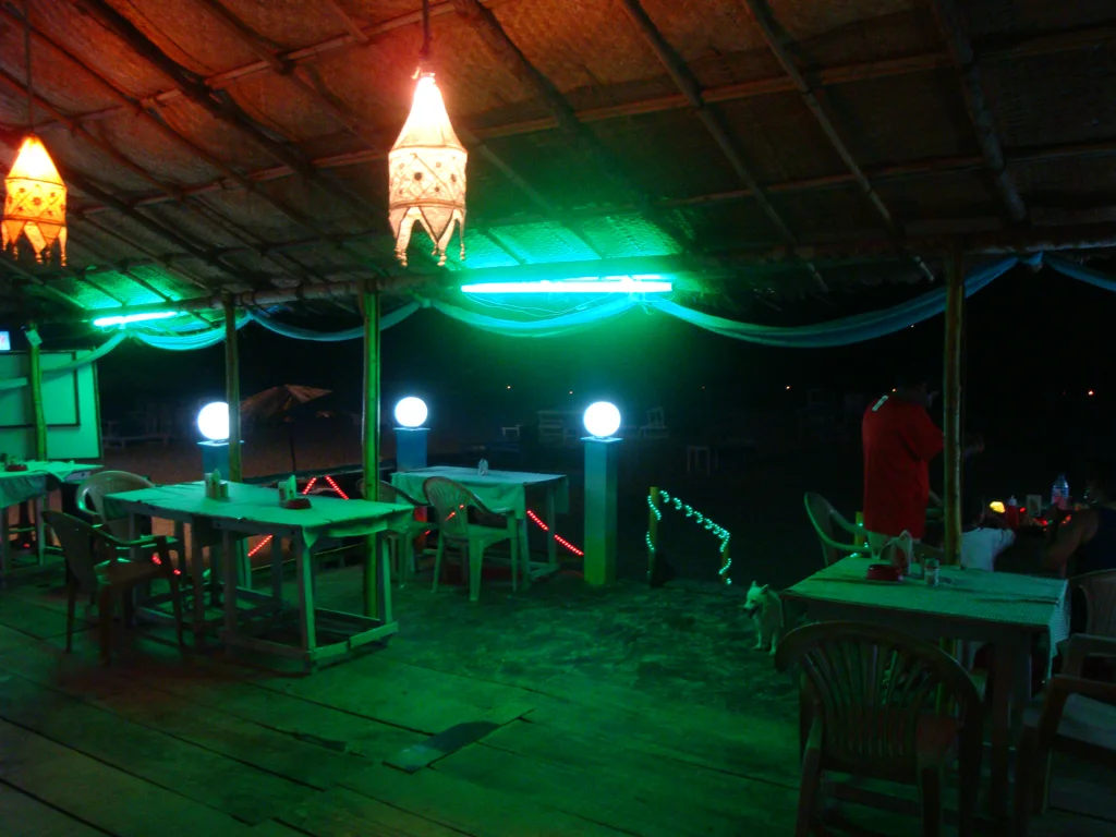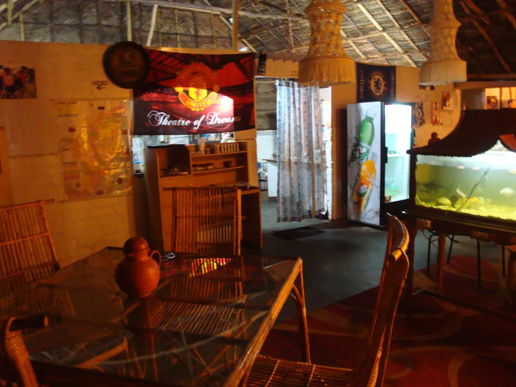 The interiors are quite common, like all the terrace restaurants in and around Pondy, it has yellow lighting and a thatched roof. The Manchester United flag is an individual touch, though.