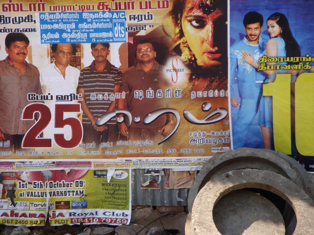 These is a series of photographs that attempt to describe the urban landscape around me from the past few months. I am always fascinated by the easy mix of urban and traditional, old and new, ugly and beautiful, traditional and contemporary. Tamil movie posters pasted on corrugated aluminium sheets line the streets of Chennai. It's a common sight across the country, but these have their special melodramatic charm!